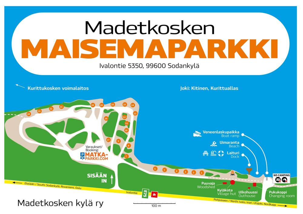 Madetkosken kylä ry ylläpitää maisemaparkkialuetta Kurittualtaan rannalla, Ivalontie 5350, 99600 Sodankylä.