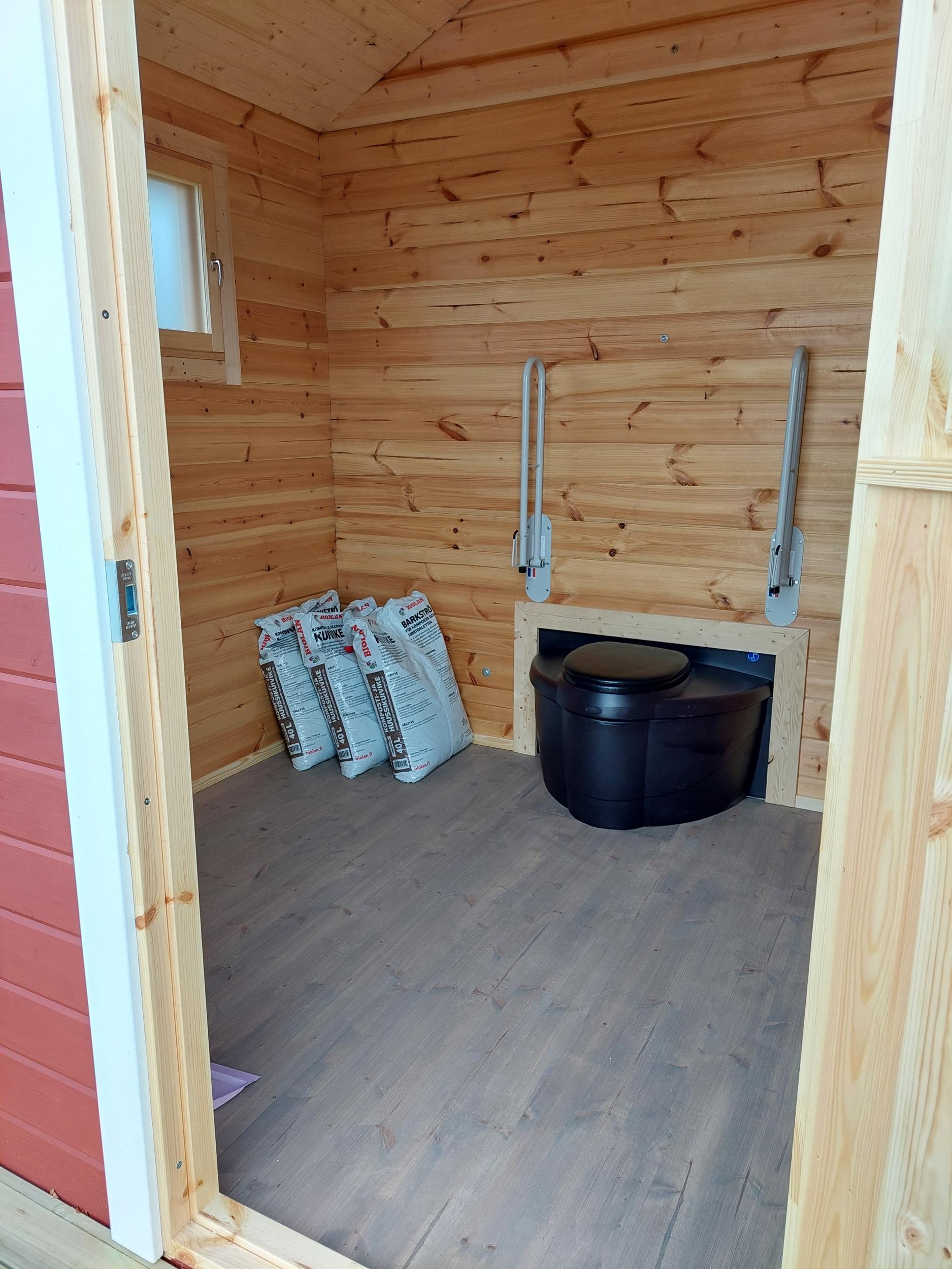 pukukopit, ulkohuussi, laituri ja veneenlaskupaikka.